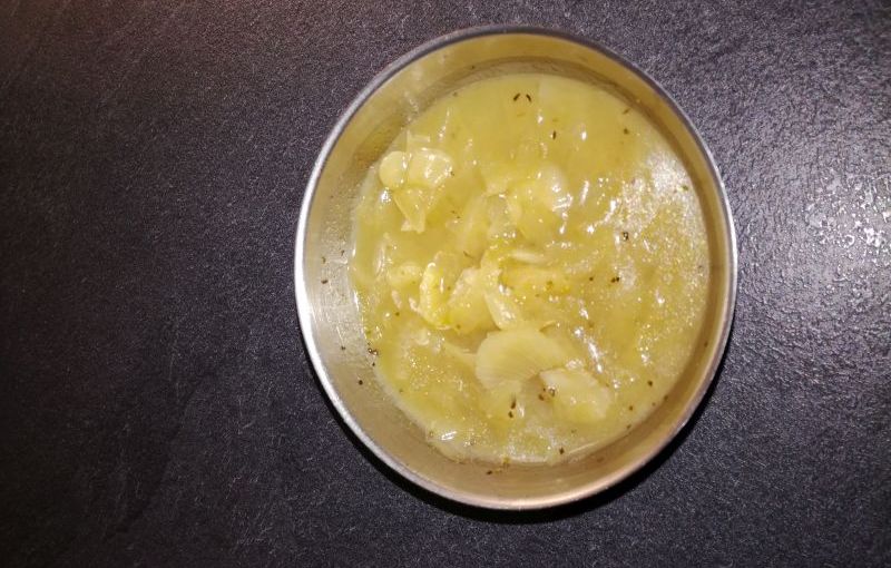 Wordt de confit te dik, kan je bijvullen met kleine beetjes water. - Wanneer het boeltje begint aan te voelen als een “losse confituur”, deksel af en verder laten pruttelen tot je de gewenste dikte hebt.