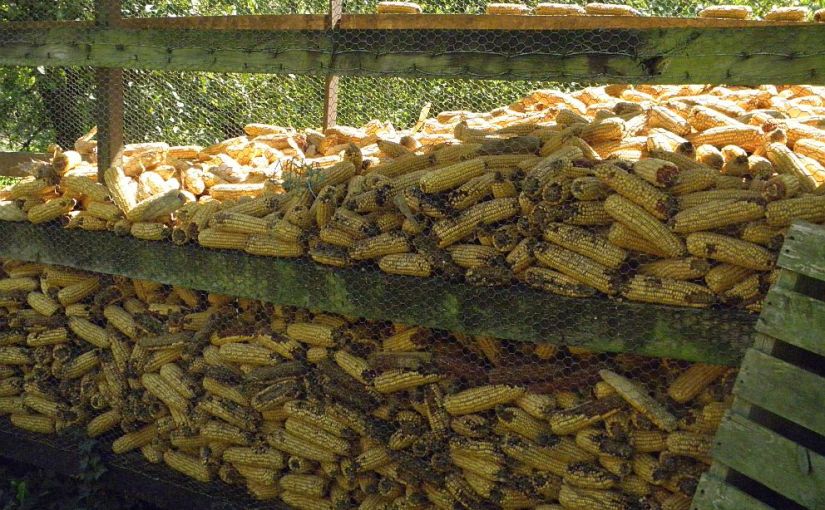 Foto : Een droogrek voor maïs in de buurt van Saint-Cyprien-sur-Dourdou.