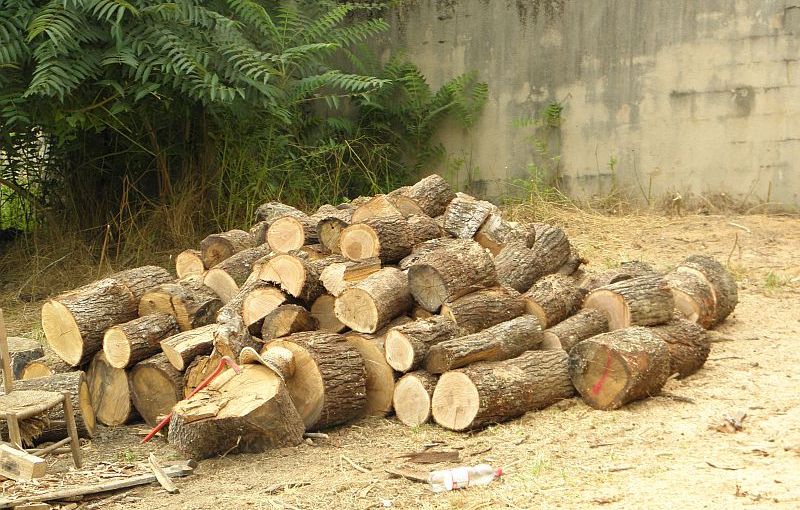 Foto : hout zagen, klieven en stapelen, nog zoiets dat nooit ophoudt