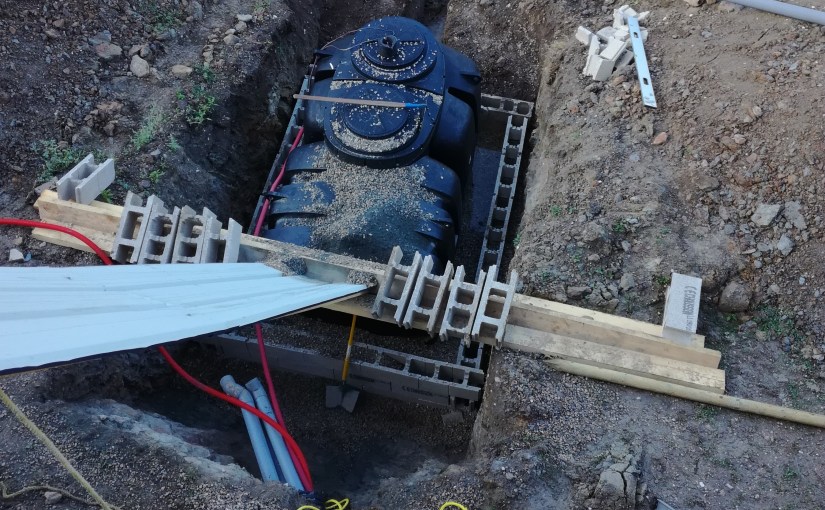 Die raadde ons een systeem aan met minimaal 2 kamers, waarbij de eerste kamer dienst doet als traditionele septische put en de tweede kamer zorgt dan via een ingenieus filtersysteem voor de zuivering van het uitvloeiwater, dat dan rechtstreeks in een uitvloeiingssysteem geloosd mag worden.